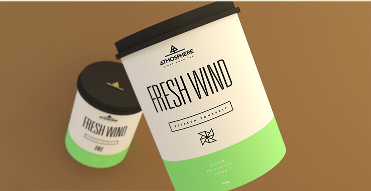 在密閉的圓柱形容器內(nèi),保持茶葉內(nèi)新鮮。每個品種都有一個好名字,意味著它所代表的元素,像“火”和“清新的風(fēng)”。茶類寫的是一個又高又瘦的無襯線字體,他們都具有代表性的圖標(biāo)。茶蓋的標(biāo)志,一個幾何樹站在一個景觀,也看起來像字母“A”的